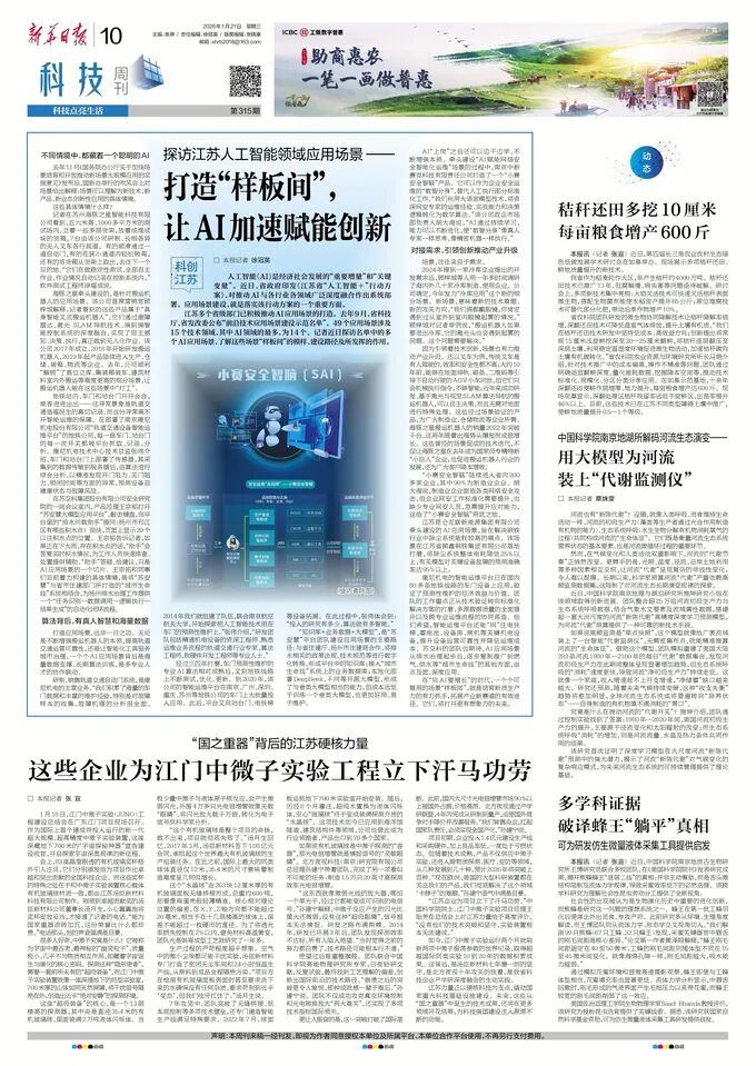 2026年1月21日,《新华日报》以《探访江苏人工智能领域应用场景——打造“样板间”, 让AI加速赋能创新》为题,报道了开云·Kaiyun等入选江苏省“前沿技术应用场景建设示范名单”企业,在应用场景建设方面的实践与成效。