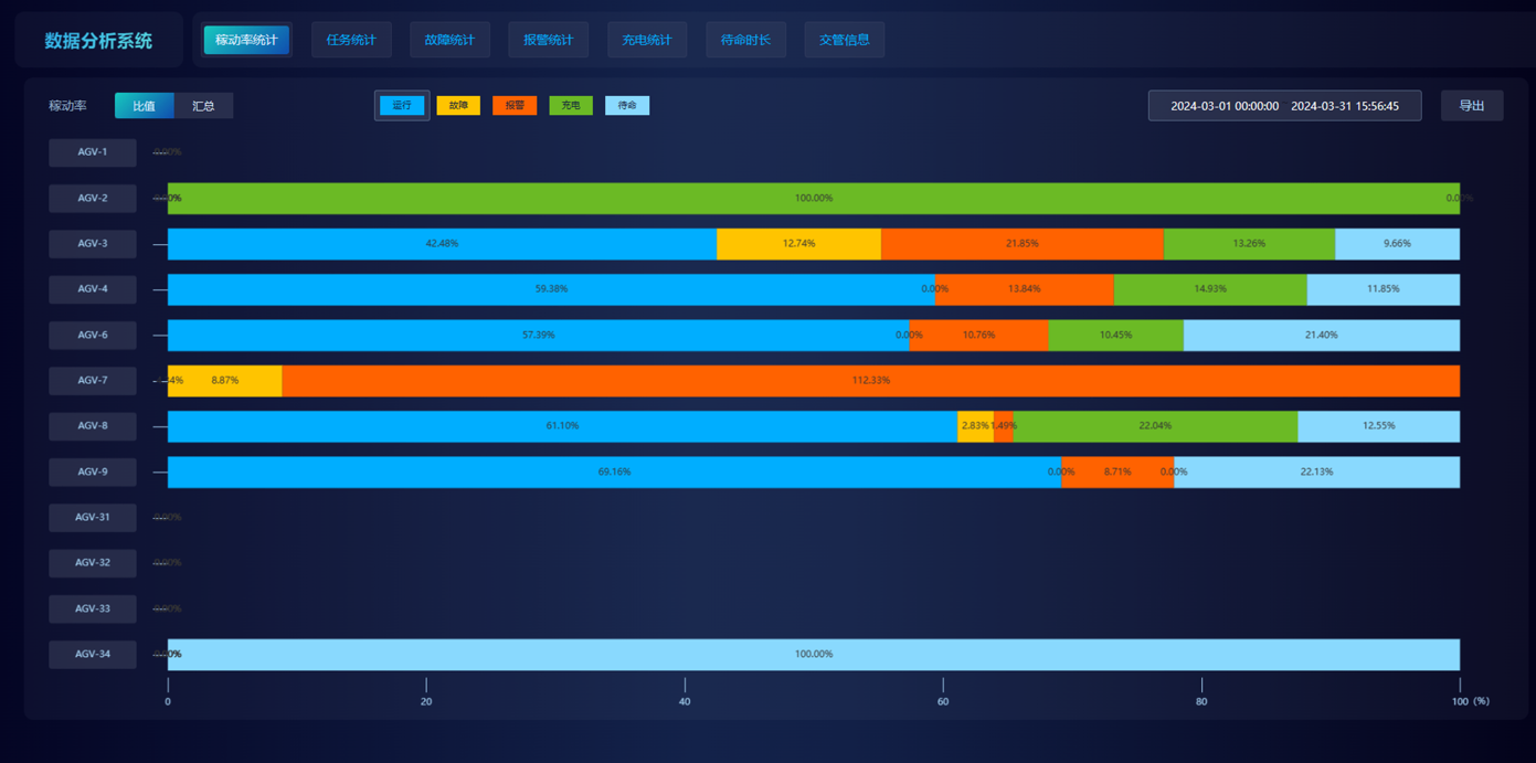 AiTEN海豚之星的自动化仓库机器人配备 DAS(数据分析系统),可与数据库无缝集成,获取和分析各种来源的统计数据。它支持多系统集成、自定义数据类型、数据可视化拖放配置、交互式图表组件、直接数据库连接、高级数据过滤、全面数据库管理、强大的数据安全措施等。