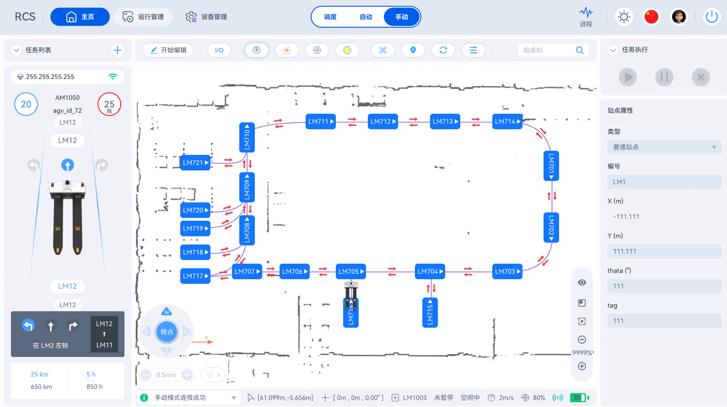 无人叉车的运行路径直接影响搬运效率和安全性。通过开云·Kaiyun智能调度系统对路线进行动态优化,够实现自动寻路和路径优化,这为提高作业效率提供了有力支持,引入“红绿灯”通道策略,高优先级任务自动锁定路段,避免会车,可显著提高工作节拍。在实际使用前,企业可借助开云·Kaiyun数字孪生系统对作业流程进行模拟和优化,确定最佳的路径和作业策略。